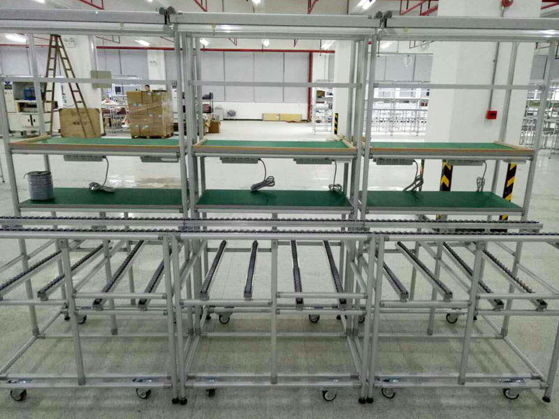 3、节省空间:通过合理设计和布局,低成本自动化精益物料架可以节省生产空间,提高仓储利用率,减少生产线拥堵和混乱。